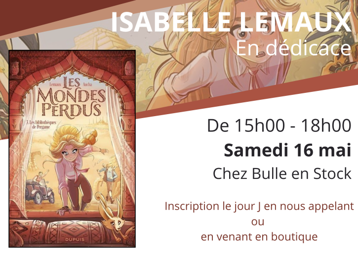 Venez rencontrer Isabelle Lemaux, à l'occasion de la sortie du tome 3 de la BD "Les mondes perdus" parue aux éditions Dupuis.