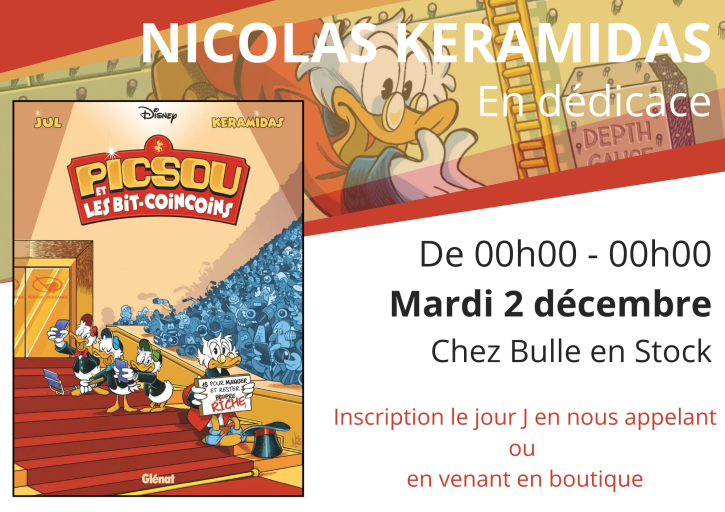 Venez rencontrer Nicolas Keramidas, dessinateur sur "Picsou et les bit-coincoins" chez Glénat lors de ce Picsou-tour !
