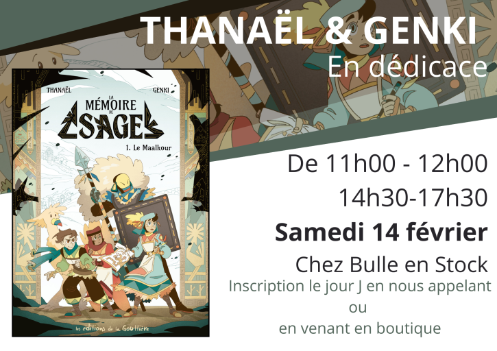 Venez rencontrer Thanaël & Genki, les auteurs de la BD "La mémoire de sage" chez les éditions de la gouttière, le samedi 14 février !