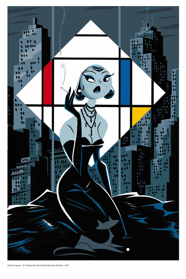 Tiré à part de ANNTONIO LAPONE (LA FLEUR DANS L'ATELIER MONDRIAN), format 40*60, papier sensation 270 g, numéroté et signé par l’auteur, 250 ex