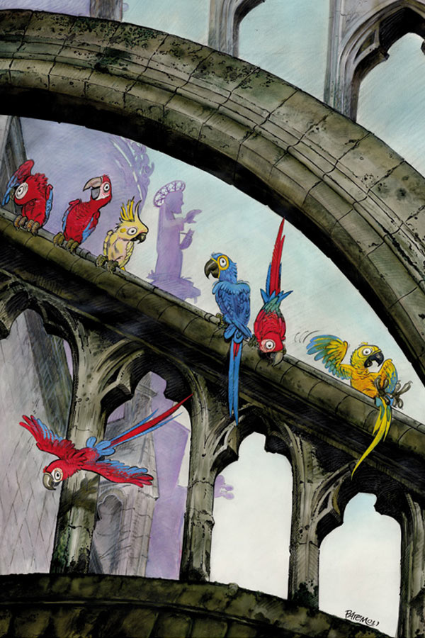 Affiche reprenant le dessin original que BATEM a réalisé en 2001, dans le cadre du projet "Cathédrale d'Amiens aux couleurs du monde vue par des auteurs de bande dessinée"