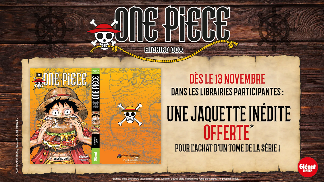 Jaquette inédite One Piece 2025 offerte à l'achat d'un tome de la série (hors occasion).