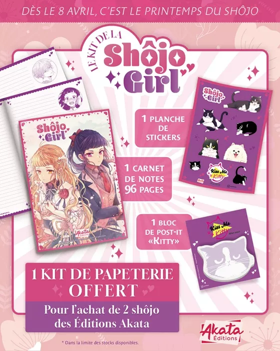 Un kit de papeterie Akata - Shojo Girl - offert à l'achat de deux shojo éditées chez Akata (hors occasion).