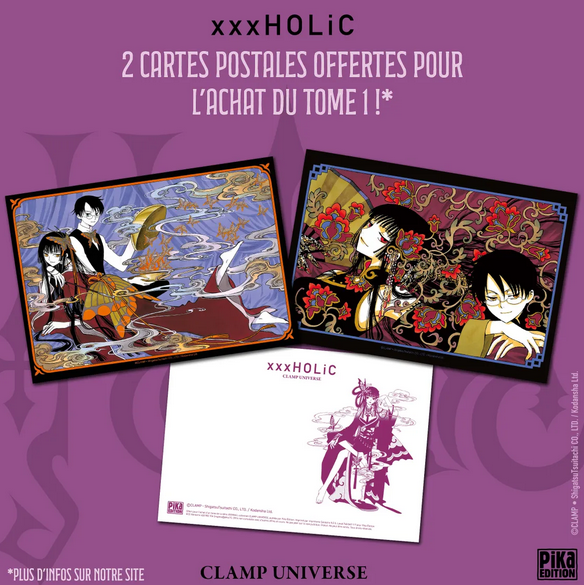 LOT DE DEUX CARTES XXX HOLIC OFFERT A L'ACHAT D'UN TOME DE LA SERIE (HORS OCCASION). LES OFFRES GOODIES NE SONT PAS CUMULABLES.