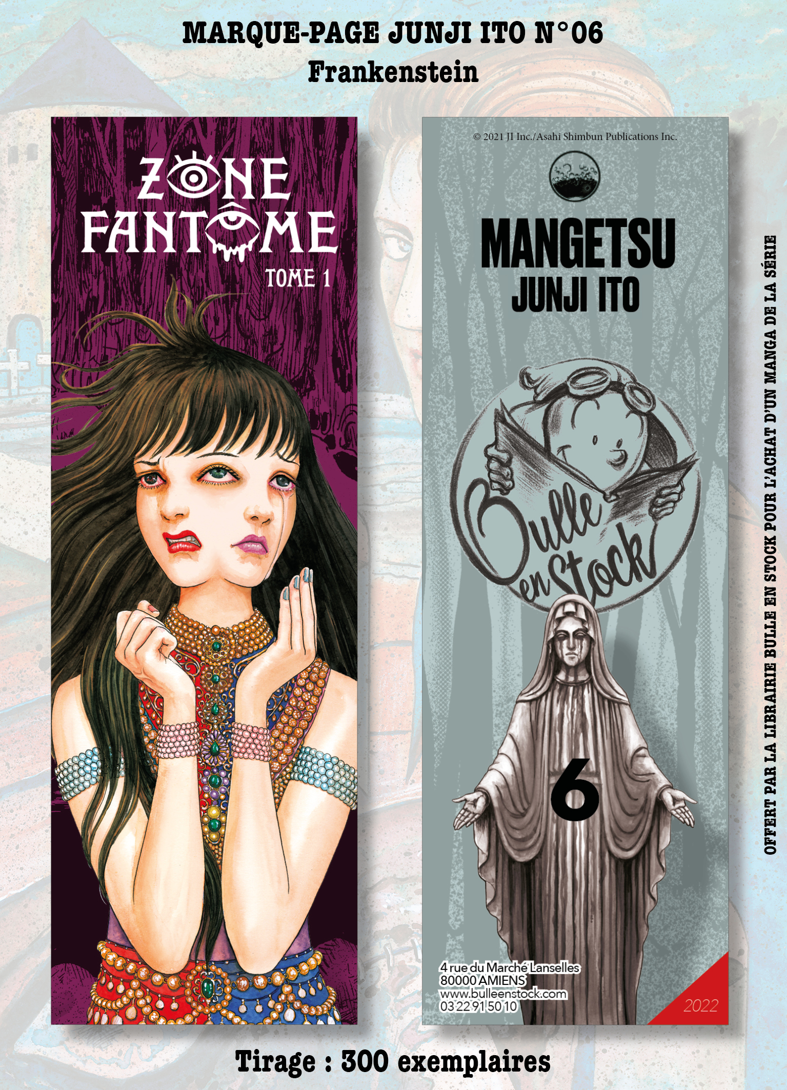 Ce Marque-page est offert uniquement à l'achat d'au moins un volume de Junji ITO aux éditions MANGUETSU (hors occasion), et sera limité à 2 exemplaires par personne quelque soit la commande (1 manga = 1 MP, 2 mangas ou plus = 2 MP). Tirage limité à 300 exemplaires. Étant une édition exclusive de la librairie BULLE EN STOCK, ce marque-page ne sera disponible que sur www.bulleenstock.com et dans la librairie ! - Imprimé sur du papier 350g, avec une finition Soft Touch, du Vernis selectif 3D, et foil VERT ce marque-page saura ravir les collectionneurs !