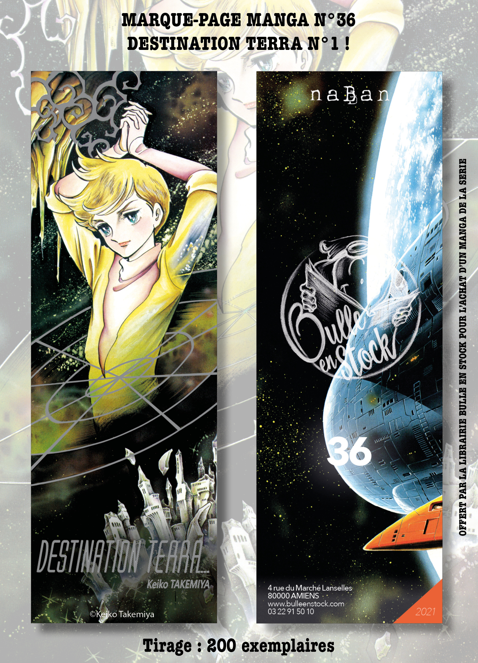 Ce Marque-page est offert uniquement à l'achat d'au moins un volume de la série "DESTINATION TERRA" aux éditions NABAN (hors occasion), et sera limité à 2 exemplaires par personne quelque soit la commande (1 manga = 1 MP, 2 mangas ou plus = 2 MP). Tirage limité à 200 exemplaires. Étant une édition exclusive de la librairie BULLE EN STOCK, ce marque-page ne sera disponible que sur www.bulleenstock.com et dans la librairie ! - Imprimé sur du papier 350g, avec une finition Soft Touch, du Vernis selectif 3D,ainsi que du foil, ce marque-page saura ravir les collectionneurs !