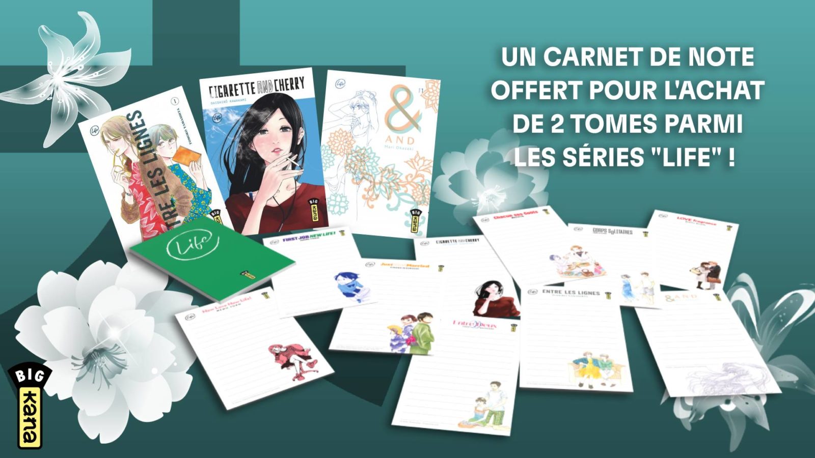 Un carnet de note offert pour l’achat d’au moins 2 tomes de la collection « Life » chez KANA !