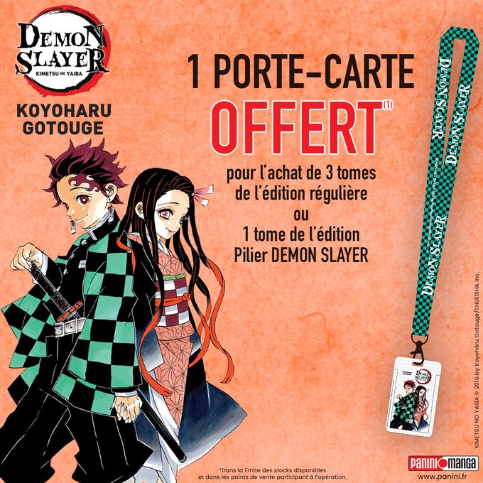 Porte-carte "Demon Slayer" offert à l'achat de trois tomes de la série classique ou d'un tome édition pilier (hors occasion).