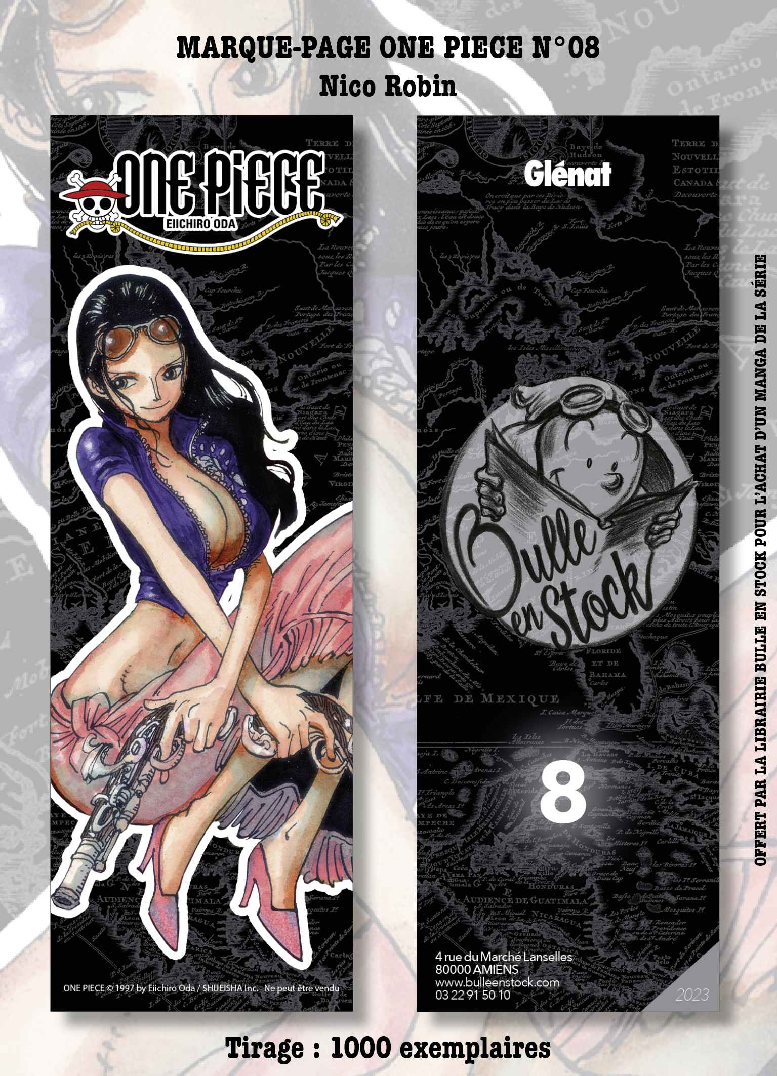Ce Marque-page est offert uniquement à l'achat d'au moins un volume de "ONE PIECE" aux éditions GLENAT (hors occasion), et sera limité à 2 exemplaires par personne quelque soit la commande (1 manga = 1 MP, 2 mangas ou plus = 2 MP). Tirage limité à 1000 exemplaires. Étant une édition exclusive de la librairie BULLE EN STOCK, ce marque-page ne sera disponible que sur www.bulleenstock.com et dans la librairie ! - Imprimé sur du papier 350g, avec une finition Soft Touch, du Vernis selectif 3D, ce marque-page saura ravir les collectionneurs !