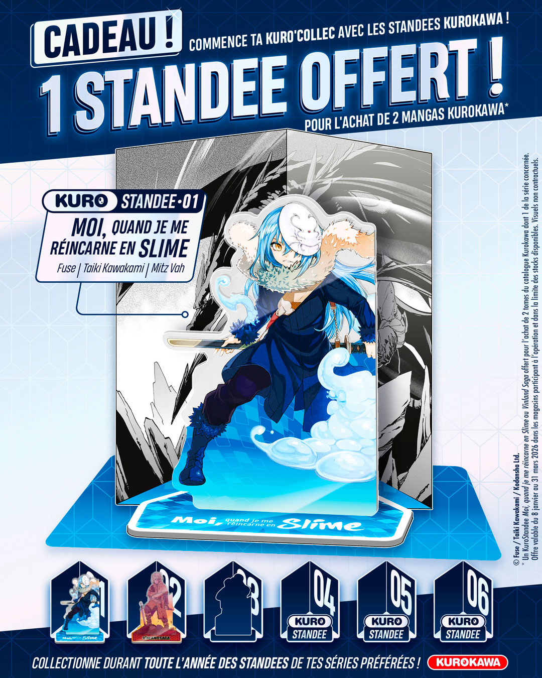 Standee acrylique n°1 - Moi quand je me réincarne en slime, offert à l'achat de 2 mangas chez Kurokawa (hors occasion).